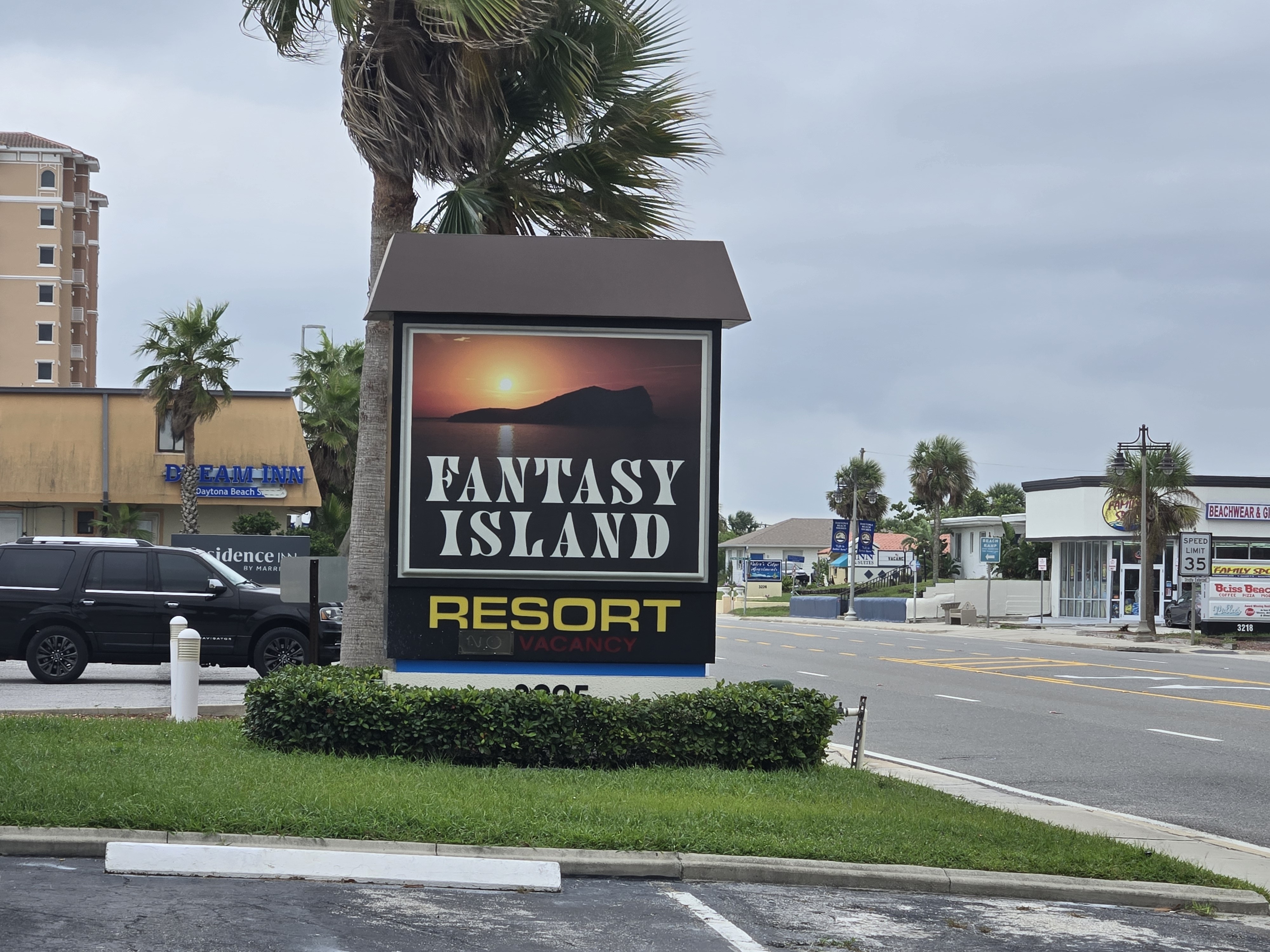 Several years ago, some friends introduced us to Fantasy Island Resort in South Daytona. It is a small property with everything you need and nothing you don’t! Fantasy Island is located right on the beach, so you have the pleasure of using their private pool or walking down to the beach or both! The perfect blend. Their rooms are best described as efficiencies; bed(s), fully equipped kitchen and eating space. They are clean, property is well managed, and the rates are fair. Since it is a smaller property, parking spaces are assigned per room, and it is private property so you are not fighting others to be able to park.