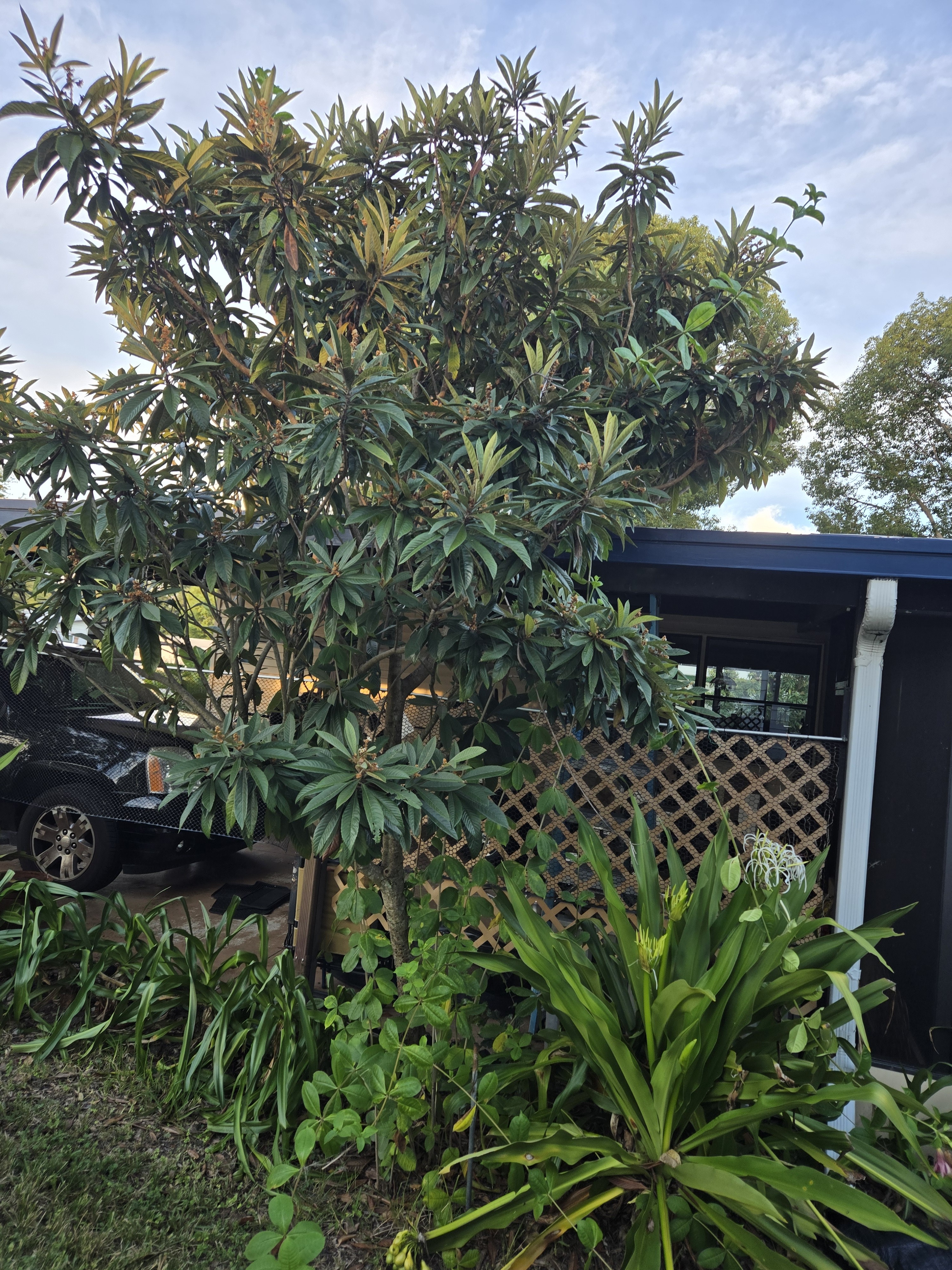 These are pictures of my friend Ellyn’s loquat tree in Zellwood. (Thank you, Ellyn, for letting me photograph them.) As you can see, these trees grow quite large. There are lots of blooms happening.