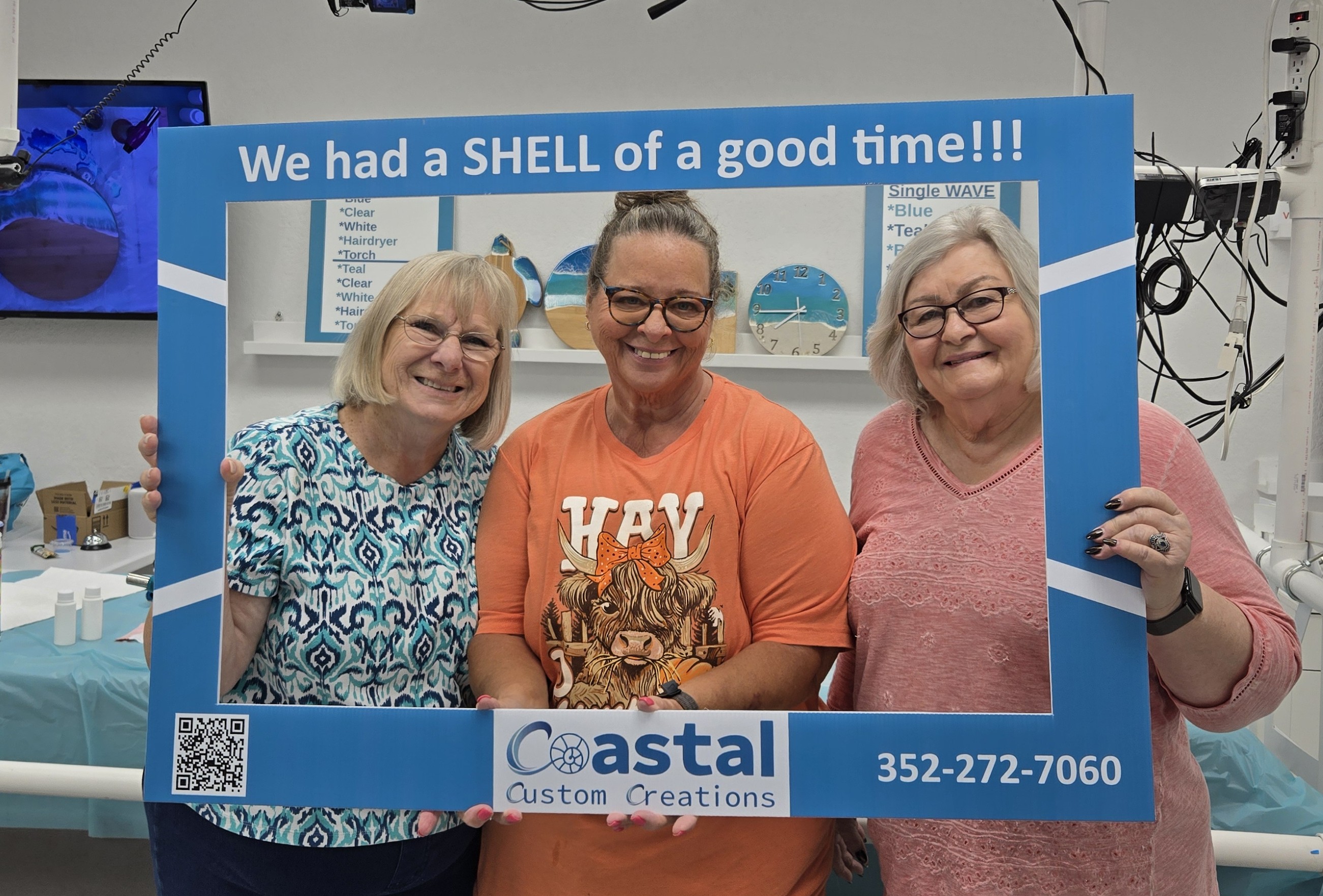 I have to say, Ginger was right. Our craft projects were fun, it was nice spending time with Ginger and Tracy, and it didn’t kill me. It’s easy to say “no, I don’t want to!” But saying yes has its rewards. Do I like crafts now? Not really! BUT I liked having the experience and maybe that is what it is all about. Doing something different, with friends, and just getting out of the normal routines. My finished project isn’t so bad. I didn’t throw it out when I got home! And yes, the seashell is SUPPOSED to be Orlando; but I don’t know where Orlando actually IS so THAT is Orlando to ME.