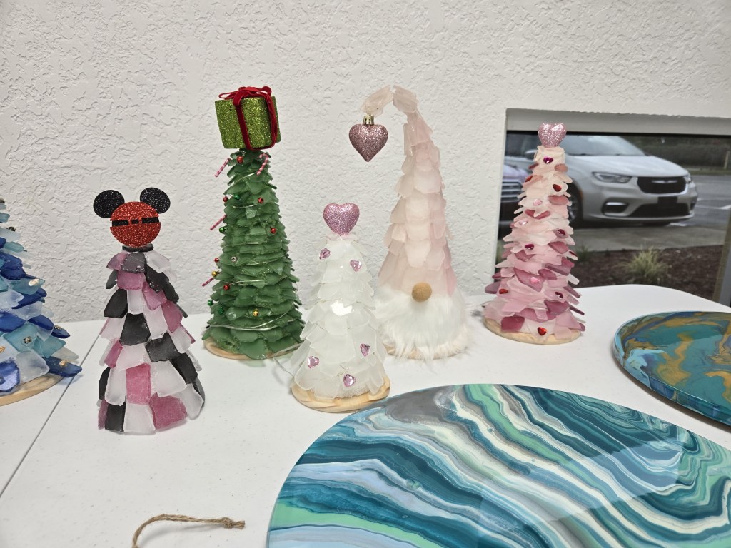 After our projects were completed, you have to leave them right there as they are and pick up the next day. If you move them the resin will jiggle and move, and the project will be a mess. Tracy was kind enough to go back the next day and pick up the completed projects.