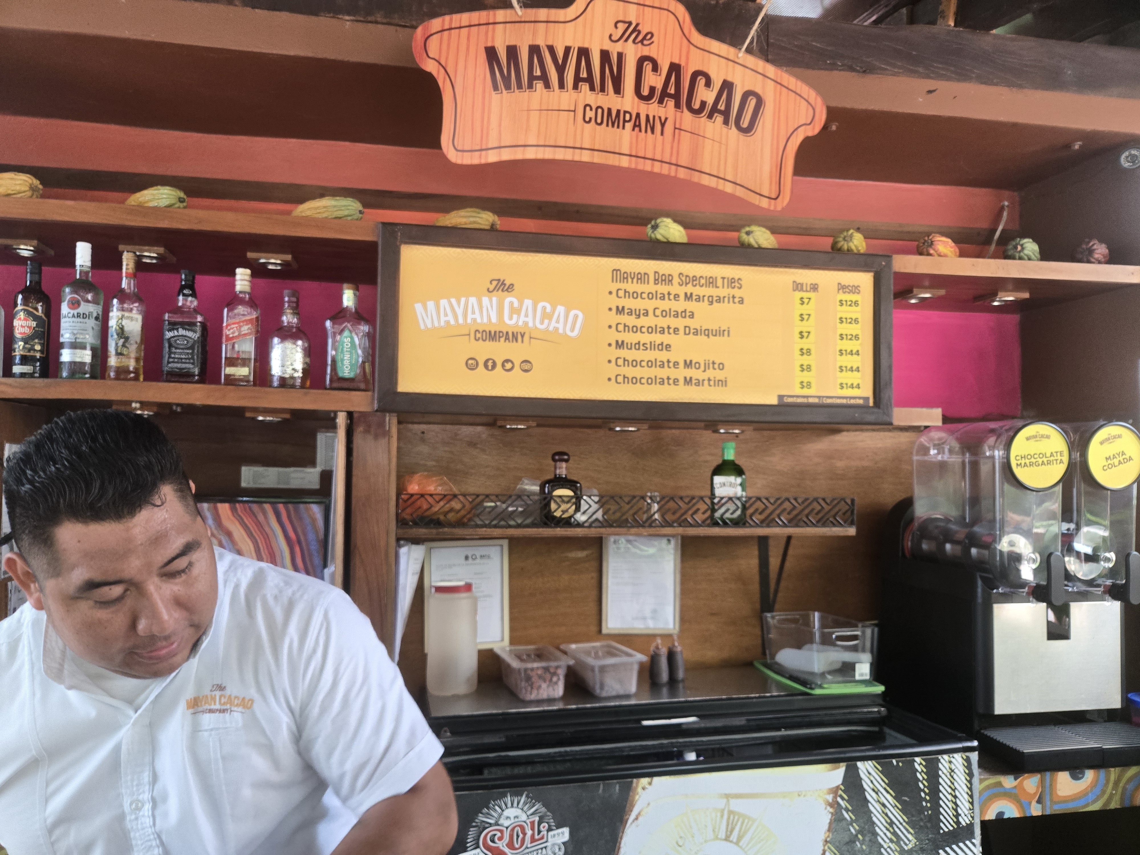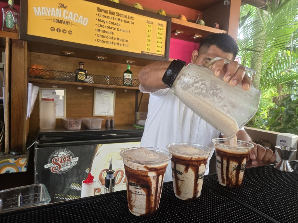 After the ruins, back on the bus and after a tour of the island and coast it was on to the Chocolate Factory. Cacao. We had been there before but it was just as interesting as the first time. Cacao, which is really bitter on its own, and the locals drank it with hot water. It was really yucky. Luckily the Eurpoean’s took it to Europe and added milk and made it wonderful! We had a fun demonstration of how it is mixed and flavors added to make it bearable.