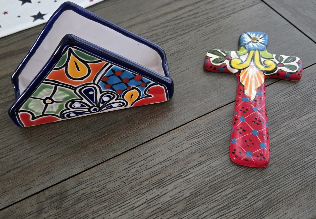 AND NO, I DID NOT DRINK 3! The gift shop offered samples of all their chocolate bars and many Mayan gifts. Very colorful and fun. I collect crosses so I got a cross and a napkin holder. My dishes are fiesta ware so the colorful items match well and will be used.