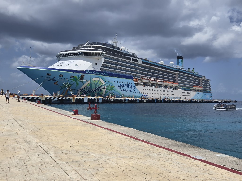 According to Wikipedia, The Islander is a renovated ship that Margaritaville purchased from Carnival. After renovation it reentered service in 2024. It has 1100 rooms and ours was a standard balcony. There was plenty of storage and the bathroom was more than adequate. Seasoned cruisers know that bathrooms can be extremely small, so this was a very good thing. We were quite comfortable in our room and would not hesitate to book it again. We do like the balcony and didn’t feel the need to upgrade to a larger room.