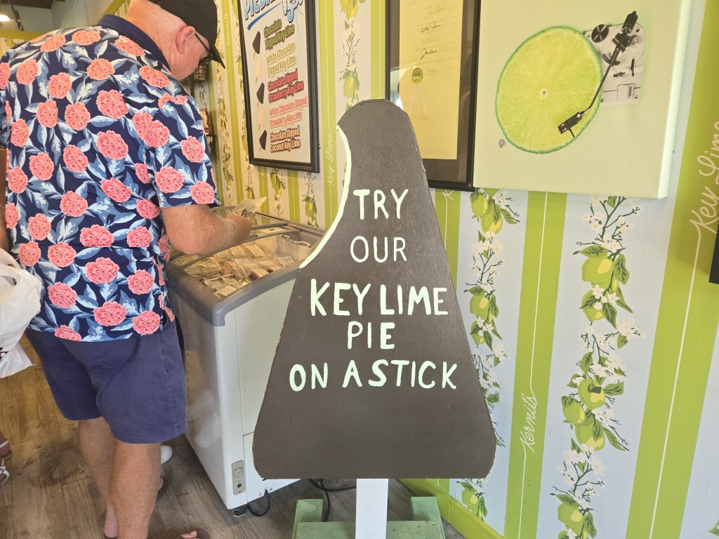 Our friend had a Sloppy Joe and said it was really good; John and I split a burger. And on to Kermit’s for their amazing Key Lime Pie! YUMMY, this is the place to get it.