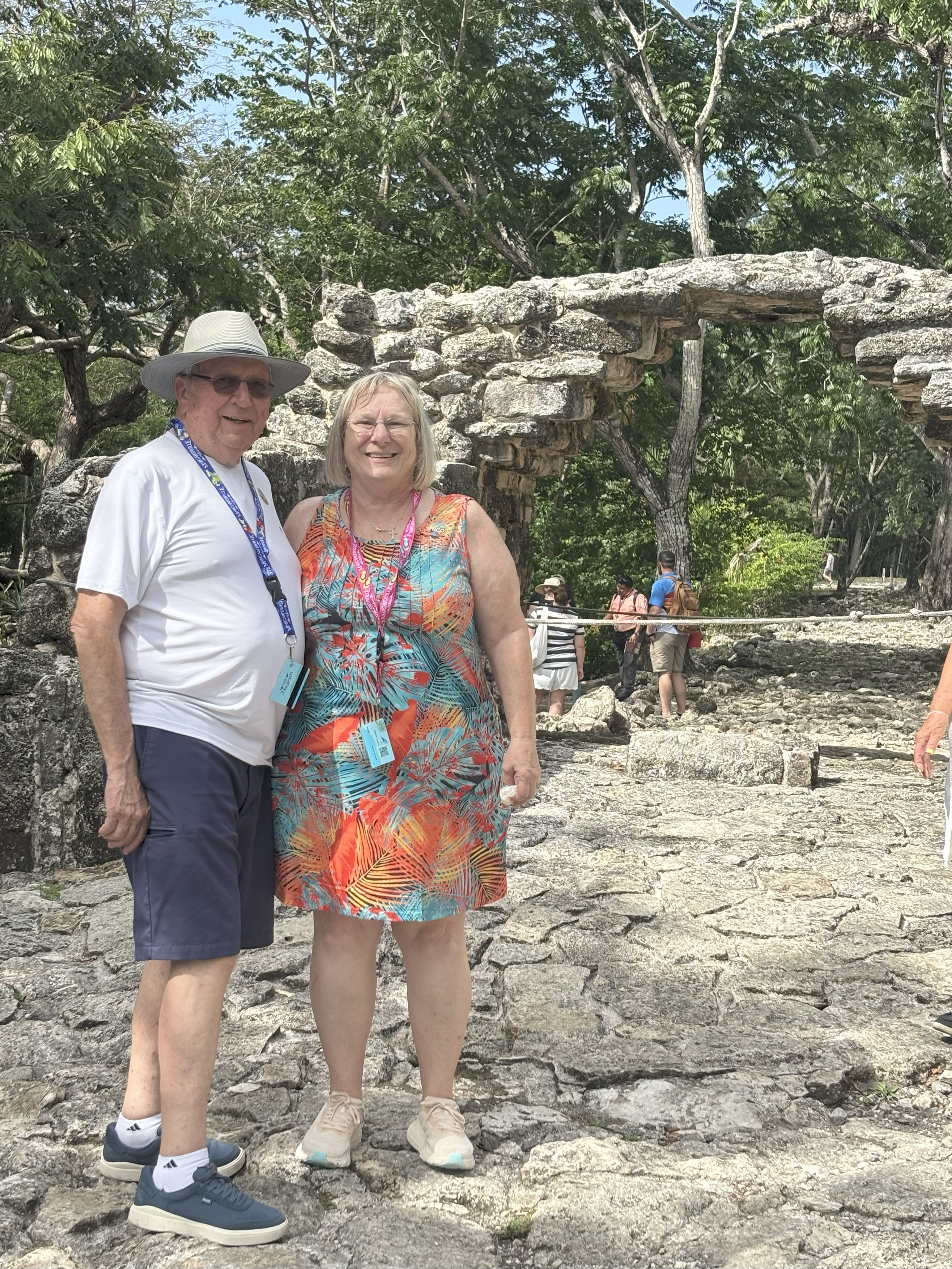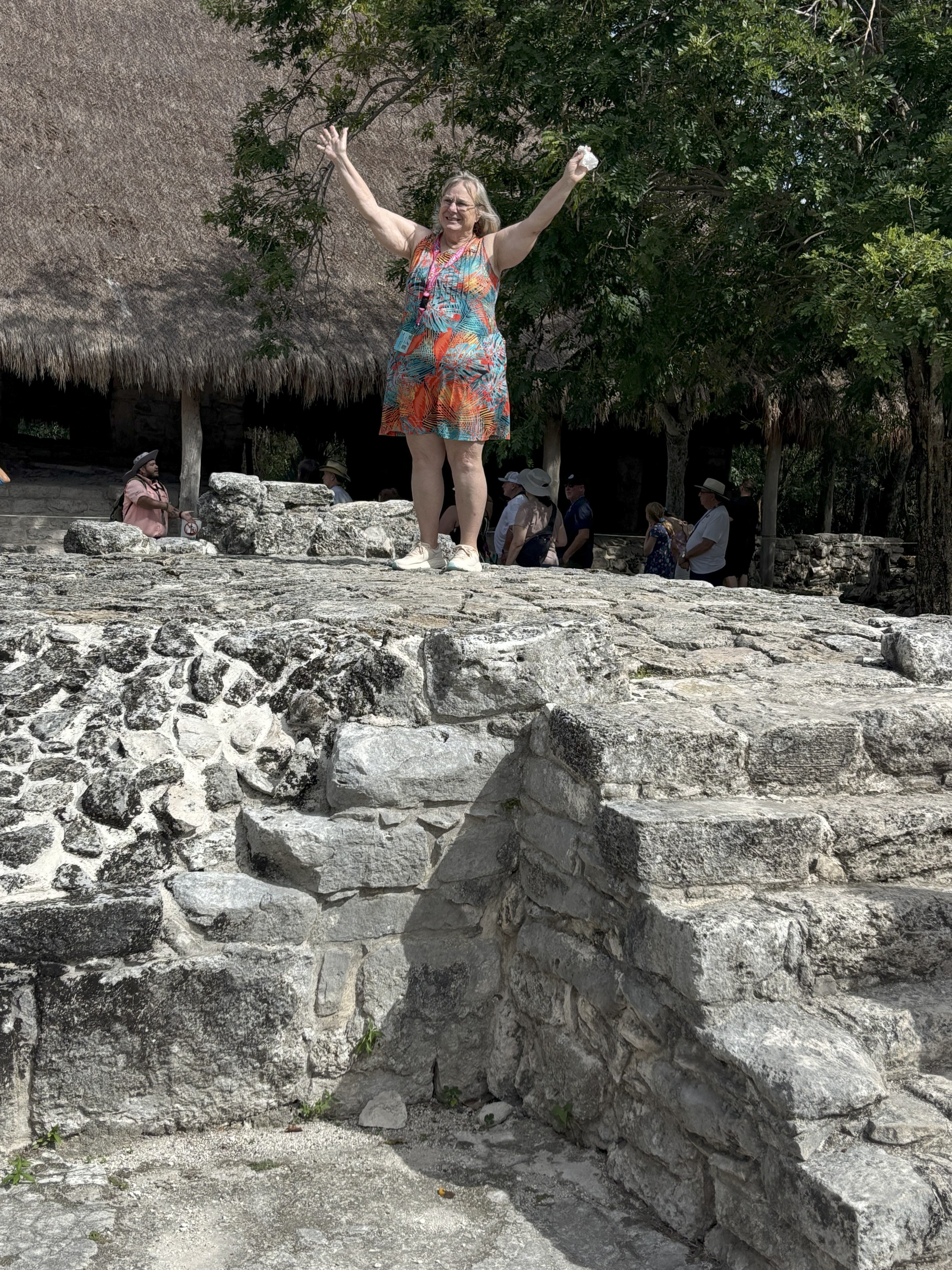 We took a ship sponsored tour to the Mayan Ruins. It was a reasonably priced tour, an AIR CONDITIONED bus and a great tour guide. I will spare you ALL the pictures I took but it was an interesting and fun day, although again, very HOT. Lots of mesquitoes. Luckily while we were waiting for the tour to begin a sweet lady had a can of bug spray she offered and we sprayed ourselves down.