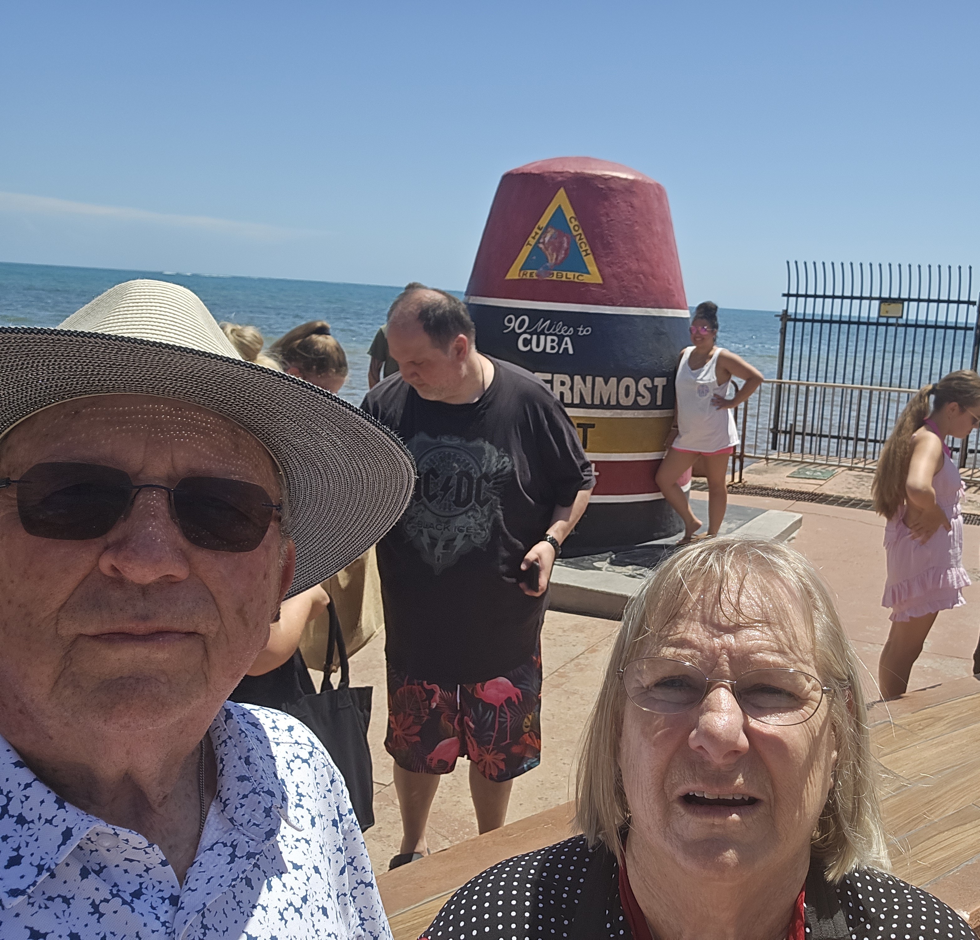 We had already been to Truman’s White House and Hemmingway’s house (both highly recommended) on our last visit so didn’t need to go again. We decided to walk to the Southern Most Point. John and I stopped at a shop to get a soda and were told it was about a mile walk and lots of places to sit and rest. Stupid us believed that total lie! LOL.