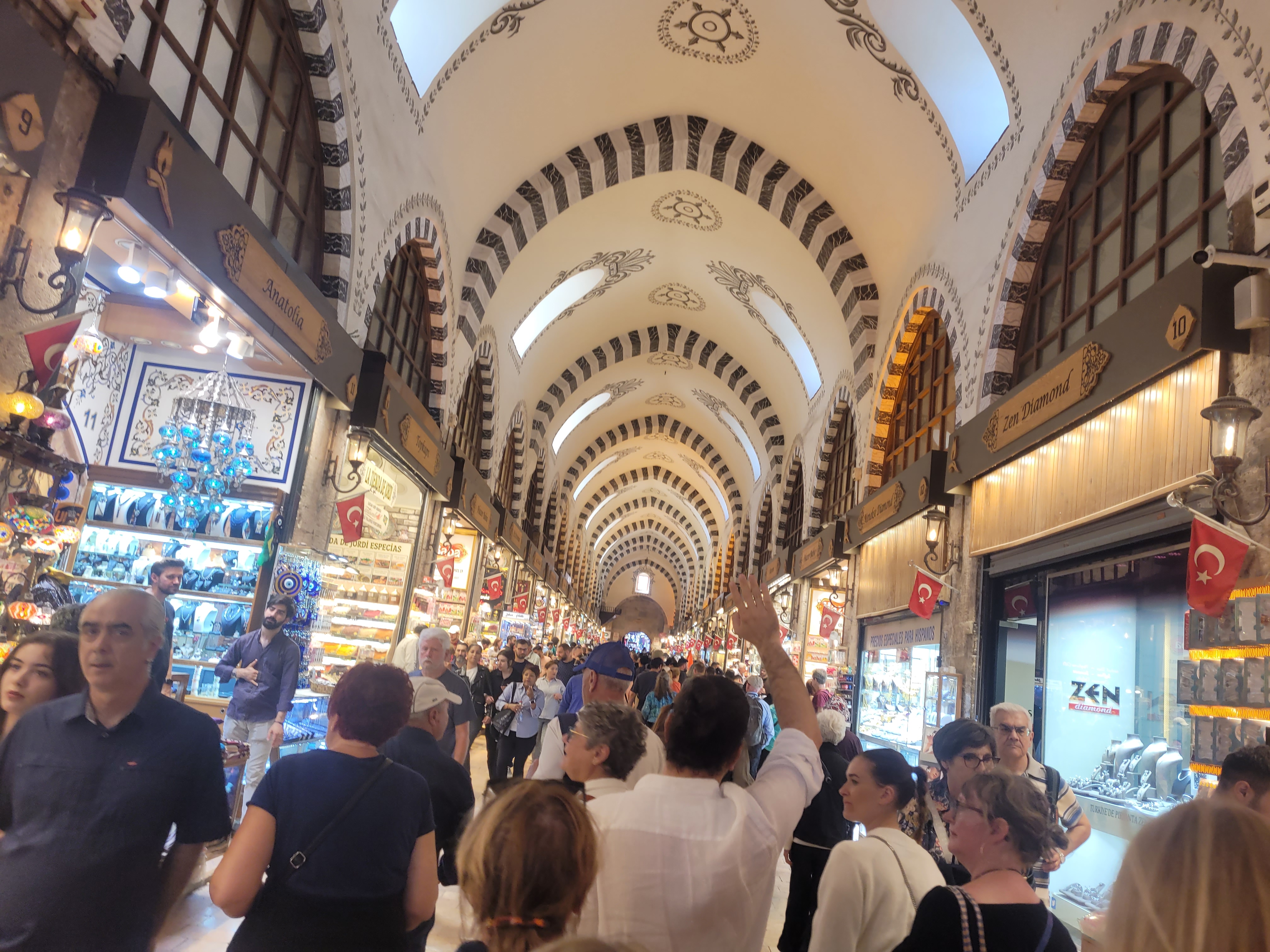 We did not have a tour scheduled as we initially docked at 4pm and would be there a 2nd day so we had decided we could be on our own and go to the world market. That would be plenty for day one. They assured us we could take public transportation with no problem. However, because of the war, the cruise ships going to Israel were diverted to Turkey; and instead of getting 3 ships, 5 arrived. An additional 10,000+ people all in port at the same time. Add to that, locals said it was the first beautiful clear day Istanbul had been given in a week. There were people EVERYWHERE in a city of 15 MILLION PLUS people. Avoid crowds, impossible! Our phones didn’t work, public transportation was very kind to take our credit card money and not share a ticket back, tick tick tick goes my mind! We decided to walk, because we were told it wasn’t that far; so “in for a penny, in for a pound” we will die here anyway! There were 6 of us walking and walking and no market in sight. And the more we walked; I relaxed a bit. There were people everywhere, but the city was interesting. It was also intimidating. None of us knew where we were going, except THAT WAY. Not much further… I think we walked 200 miles (LOL not really about 5!) and finally found a very nice man who spoke English and could actually help us. We were not going to make it to the market before it closed so we decided to go back to the port. In hindsight we should have found a place to eat and then gone back to the port but that did not seem to be an option at the time. This kind man helped us get 2 taxi’s and back to the port we went.