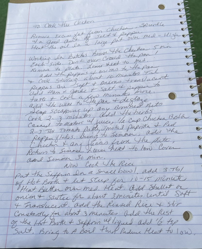 Lori is so gracious and kind, and I think genuinely excited to share her cooking skills. She featured the saffron in the rice so we could really get the flavor out of it. As soon as I tasted it, I recognized the flavor, but not as pronounced as this, in a good way. More than likely, restaurants don’t use much because of the expense of the spice. This was wonderful, and I am unable to compare it to anything I had ever had before. (And it didn’t taste like octopus! LOL) The chicken has green and red pepper, tomatoes I think, and beautiful tender chicken thighs. Red pepper flakes gave it a nice kick but not too much. It was perfect. I do not know what Lori did to prepare the rice, but it was so tender and delicate and YUMMY! I am not a culinary person, so Identifying flavors is not really something I do, but I tried really hard to focus, and Lori told me what was in it. LOL.